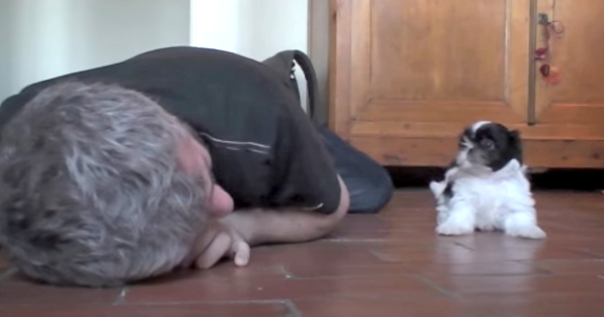 This man and his Shih Tzu do nothing for three minutes but play on the cold floor. And you know what? He didn’t mind. And nor did the dog. Pretty sure you wouldn’t either.