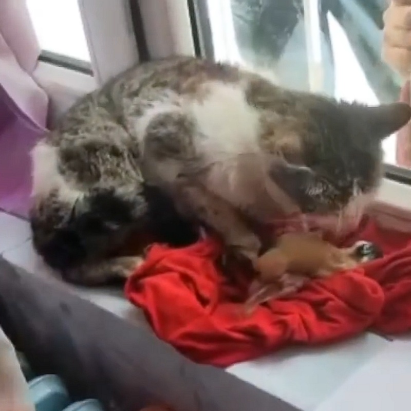 But when he was not looking, another kitten emerged from its mother’s womb.