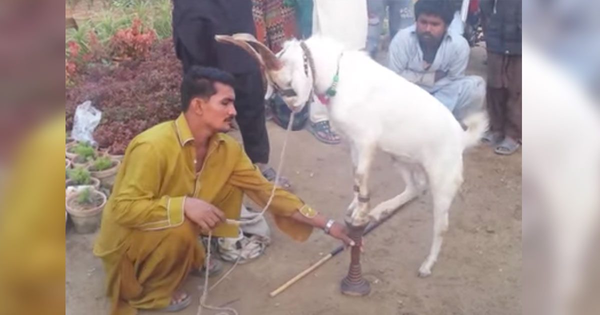 In the video below, Rani a 2-year-old goat from Karachi, Pakistan is showing off her incredible skills by balancing on a thin pole in front of a crowd of people.