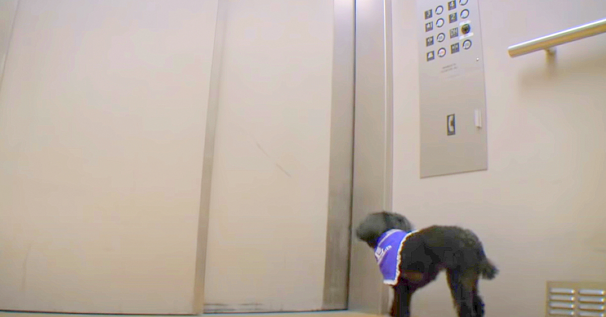 It didn’t take long before the teacup poodle had her own schedule. All Doug would do is drop her off in the elevator, then she’d go off to visit friends on the different floors of the facility. (Nala needed a little help with the buttons, of course!)