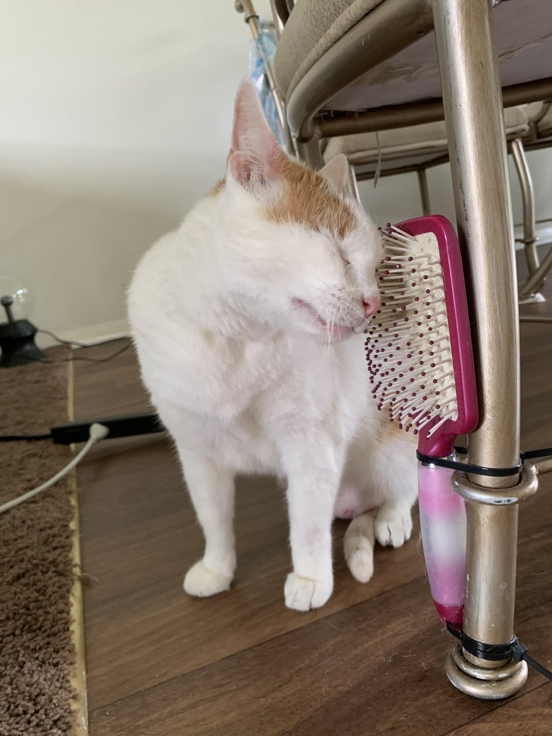 “I groom myself, but if you must brush, be gentle, especially with mats.”