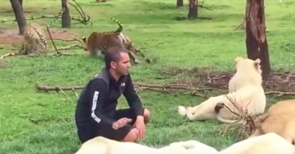 This big cat handler is showing off his pride and joy (pun intended), to the internet. He clearly has a strong relationship with all of these cats. The thing with big cats however, is that they are incredibly dangerous. This seams obvious, but when they begin to act like great big teddy bears, it can be all too easy to to forget that fact.