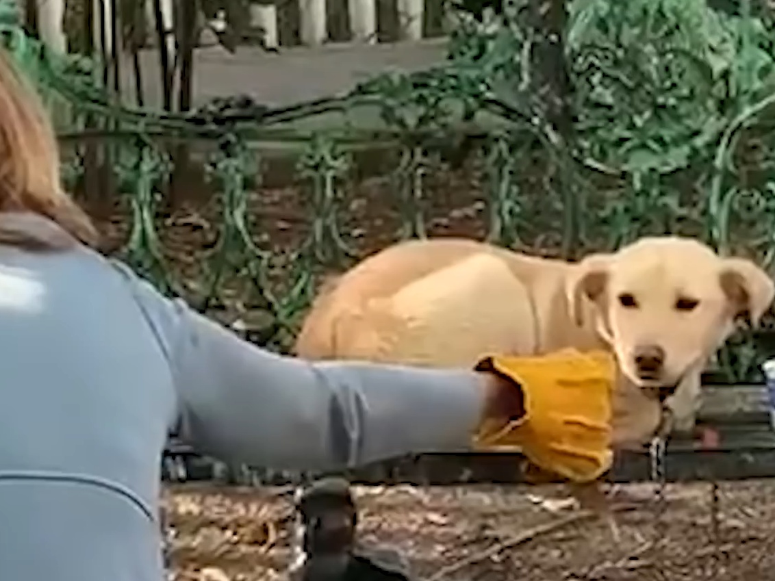 On a serene morning, a dog named Boston sat quietly tied to a park bench, his eyes reflecting a deep unease.