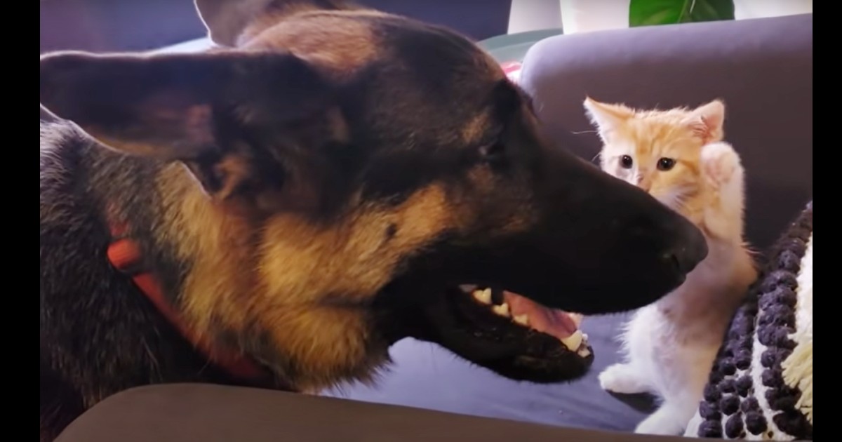 Beck the German Shepherd didn’t know how to react when his family brought home Bleu, a kitten.