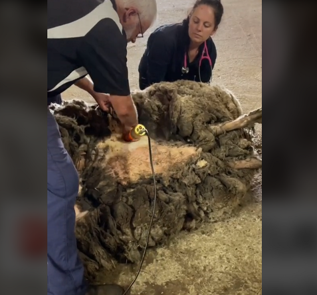 The poor animal could barely see, overgrown in fleece, according to rescuers