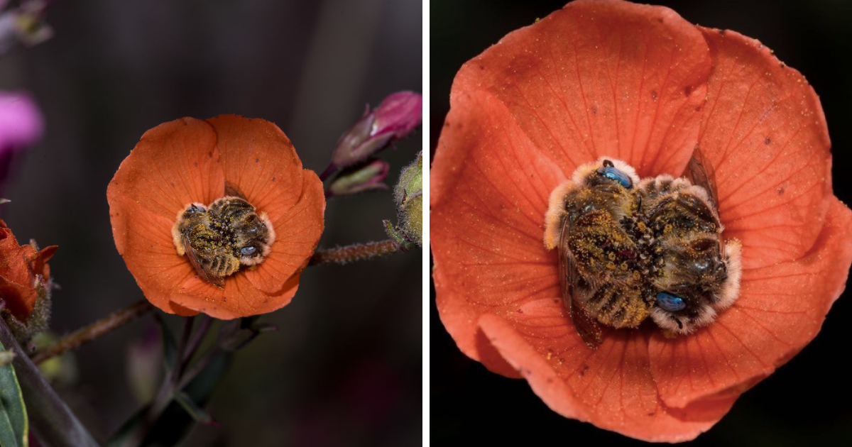 Niccole was taking photos of an orange Globe Mallow plant hidden inside the flowers when she heard some bees buzzing. That’s when she noticed the bees inside the flower.