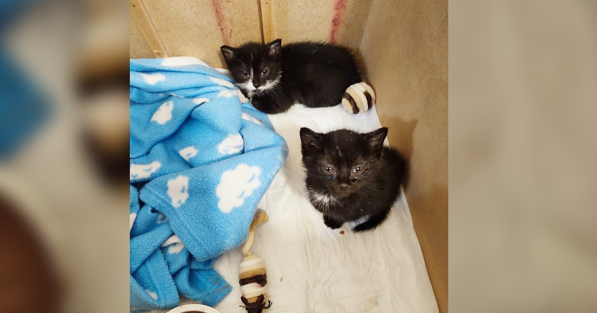 Inside the cardboard box were two kittens. Christine had no idea if they had been born there or brought by their mother, but they looked very weak.