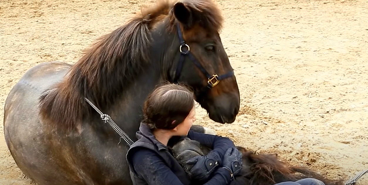 It’s common for a person to snuggle with their pet on the living room floor. However, it’s quite special seeing the way Stocker is able to do so with her horses, right there in the dirt!